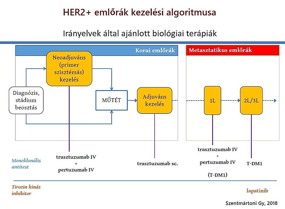 endokrin terápia, hormonterápia, kemoterápia, luminális A, luminális B, HR+, HR-, HER2+, HER2-, tripla-negatív, célzott terápia, mellrák, korai emlőrák kezelési algoritmusa, stádium, műtét, sugárterápia