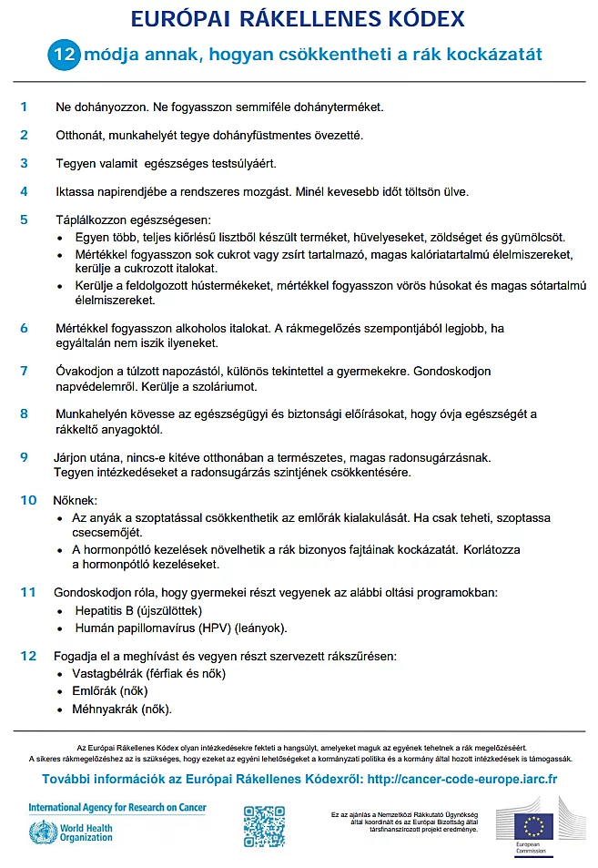 Ha tudnánk hogyan előzhetjük meg az emlőrákot, akkor nem halna meg évente több, mint 2’000 nő ebben a betegségben Magyarországon.  Ez a szomorú tény ugyanakkor nem jelenti azt, hogy semmit sem tehetünk az emlőrák – és általában a daganatok – elkerülése céljából. Először is célszerű követni az Európai Rákellenes Kódex ajánlásait. Fontos a rendszeres fizikai vizsgálat és a szervezett emlőrákszűrésen való megjelenés (elsősorban mammográfia/tomoszintézis és ultrahang valamint mágneses rezonancia indokolt esetben) – különösen a magas rizikójú nők esetében.