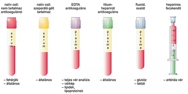 Zárt vérvételi rendszer mintacsövei (Kovács LG és Ludány A, 2009)