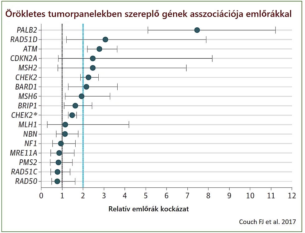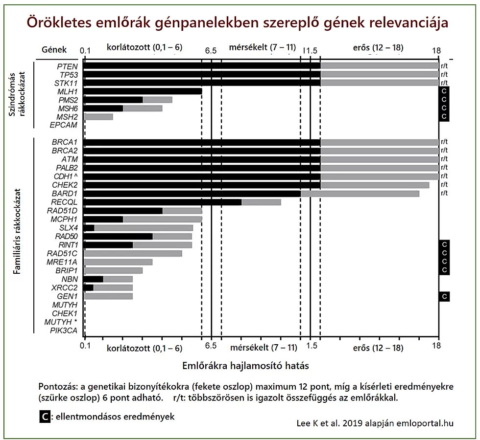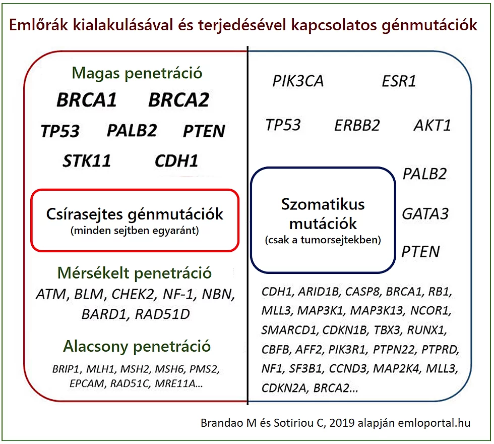 PTEN, BRCA1, BRCA2, TP53, CDH1, PALB2, ATM, NF1, STK11, BARD1, CHEK2 Emlőrák kialakulásának kockázata nőkben, fontosabb rákgén mutációk esetén MELLRÁK
