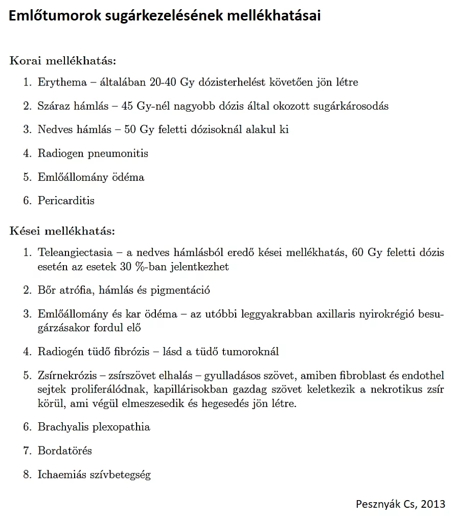 Emlőrák sugárterápiájával kapcsolatos döntési szempontok , Betegadatok Életkor, nem Általános állapot Társbetegségek Dohányzás, alkohol Testsúly, BMI Emlőparaméterek Biomarkerek, Sugárterápia Igen vagy nem? - indikációk - kontraindikációk Ki? Hol? Mikor? Mivel? Kuratív vagy palliatív? WBI vagy APERT? Boost vagy sem? Modalitás Teleterápia (EBRT) - 3D konformális - intenzitásmodulált - képvezérelt - sztereotaxiás Közelterápia (BT) Intraoperatív (IORT), Toxicitás Korai, késői Sugárérzékenyítés - hipertermia - kemoradioterápia Szerv védő technikák - légzésvezérlés - hasonfekvés - protonterápia, Áttétek, Emlőtumor Méret, alak Differenciáltság Elhelyezkedés Többgócúság Morfológiai altípus Molekuláris altípus In situ komponens